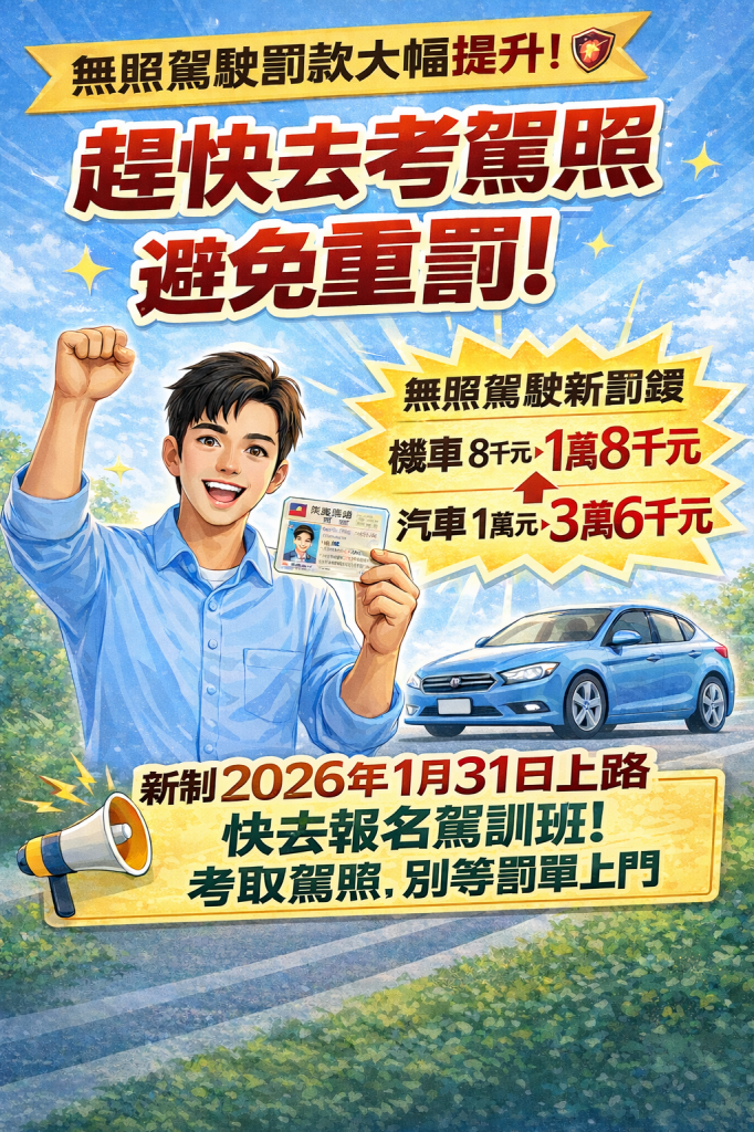 快去報名駕訓班~考取駕照,別等罰單上門!