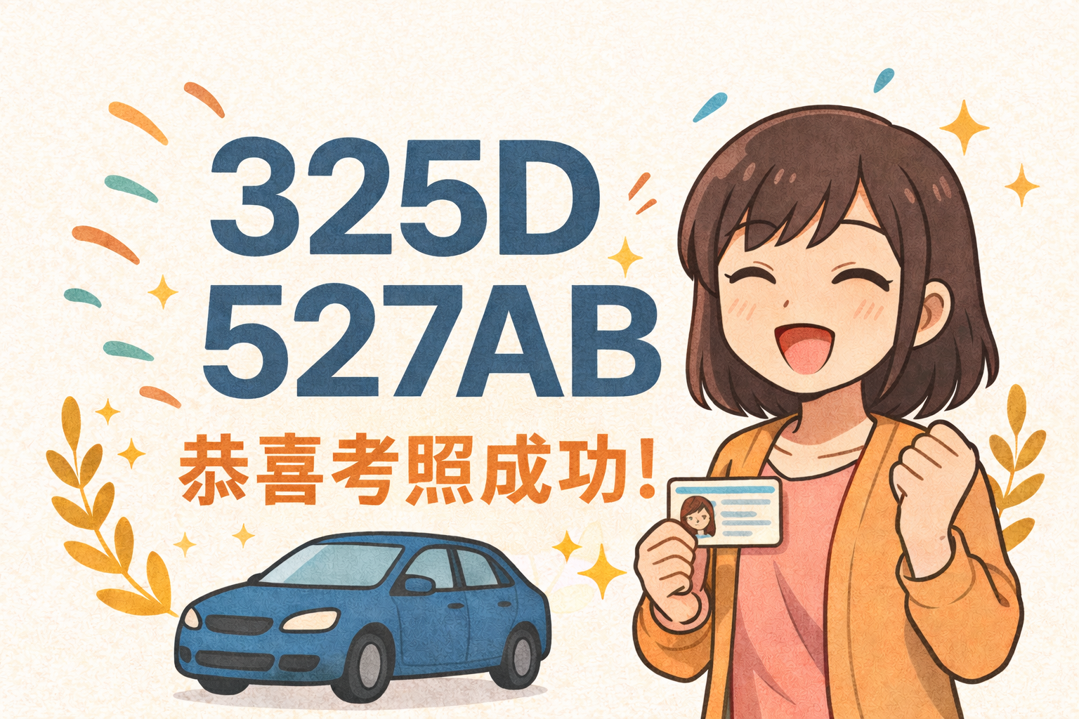 325D、527AB期(考試日期:12/18)恭喜考照成功!駕照已可領取,記得帶有照片的證件來領取~地點:大龍港駕訓班(221新北市汐止區忠一街9巷12號)營業時間:週一至週五: 06:00~20:30週六、日及國定假日: 09:00~16:00