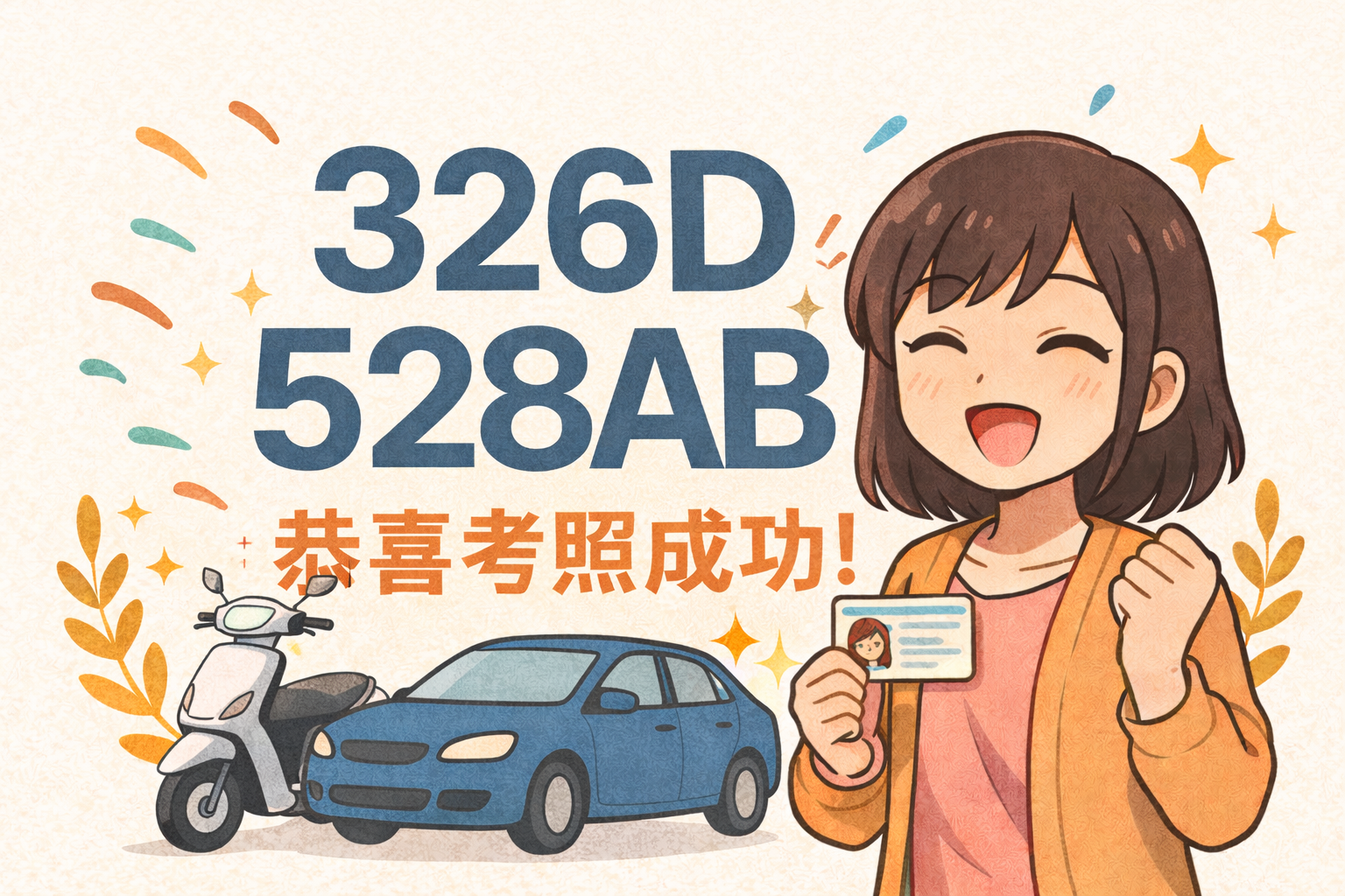 326D、528AB期(考試日期:12/26)恭喜考照成功!駕照已可領取,記得帶有照片的證件來領取~地點:大龍港駕訓班(221新北市汐止區忠一街9巷12號)營業時間:週一至週五: 06:00~20:30週六、日及國定假日: 09:00~16:00